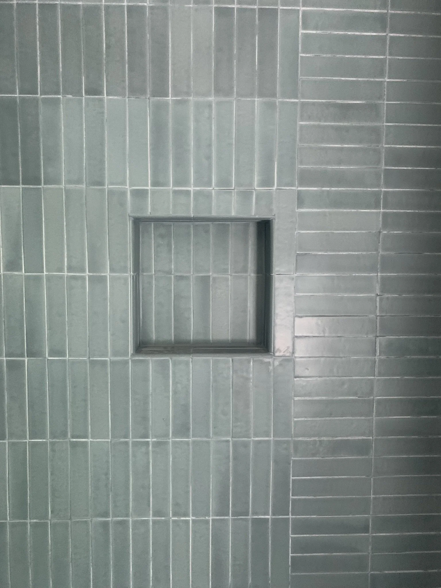 For our Mason Studios project, we sourced locally made Pratt + Larson ceramic tile in tranquil blue tones and played with the installation pattern, providing a modern design and textural interest.