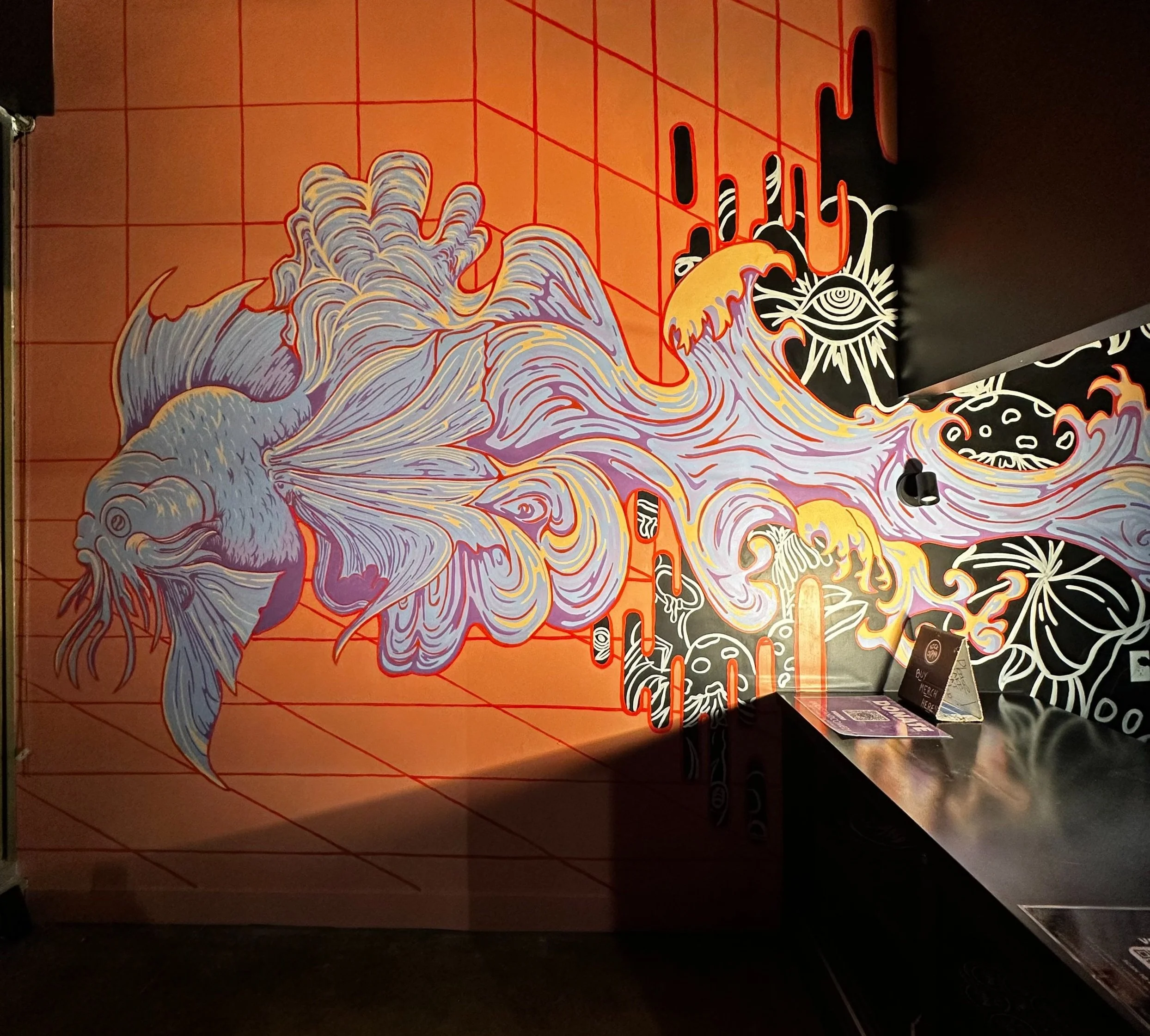 For our Kickstand Comedy Club project, we had the large scale custom murals designed and painted by one of our own in-house Harka designers, giving the space a truly unique vibe.